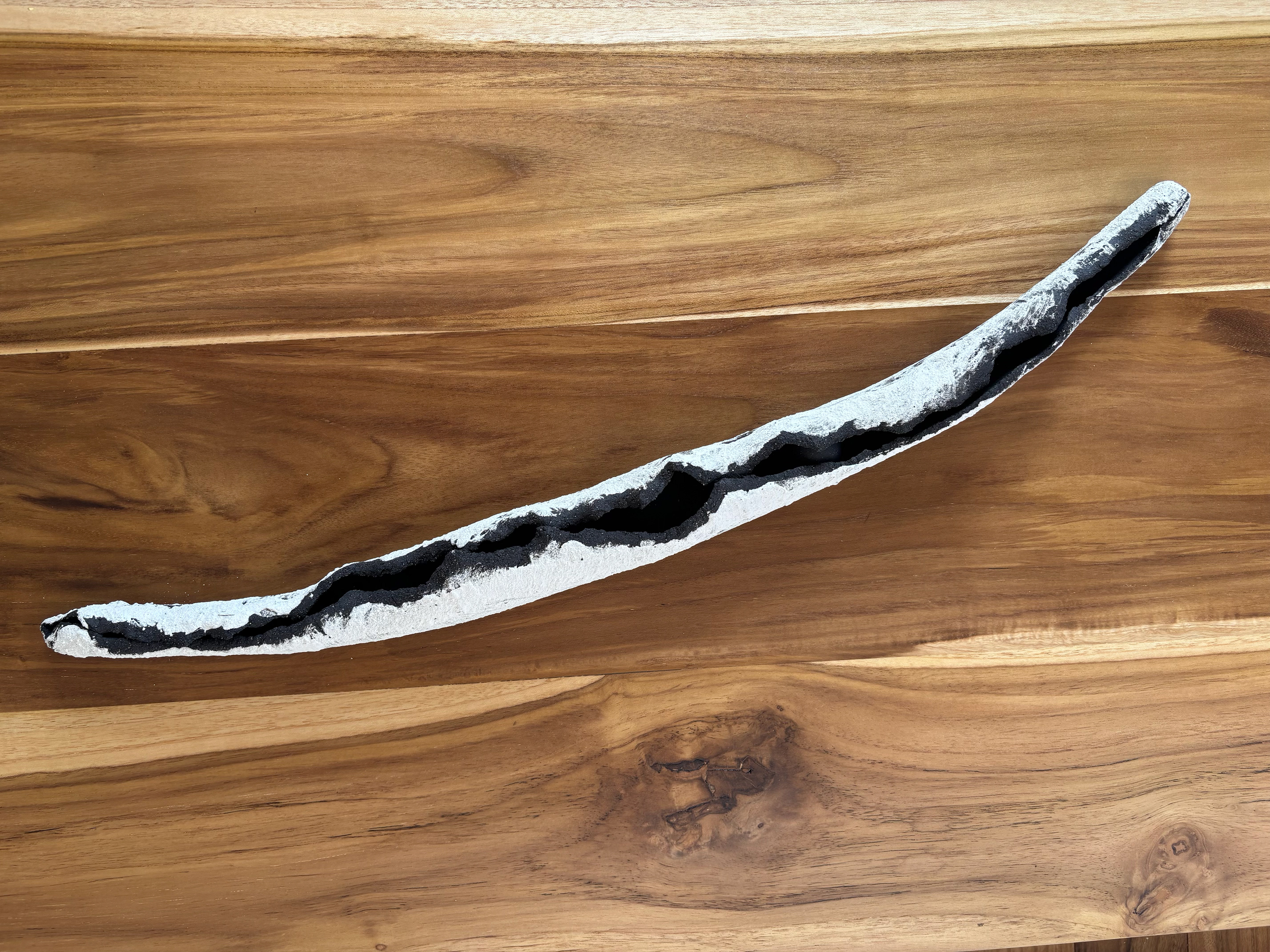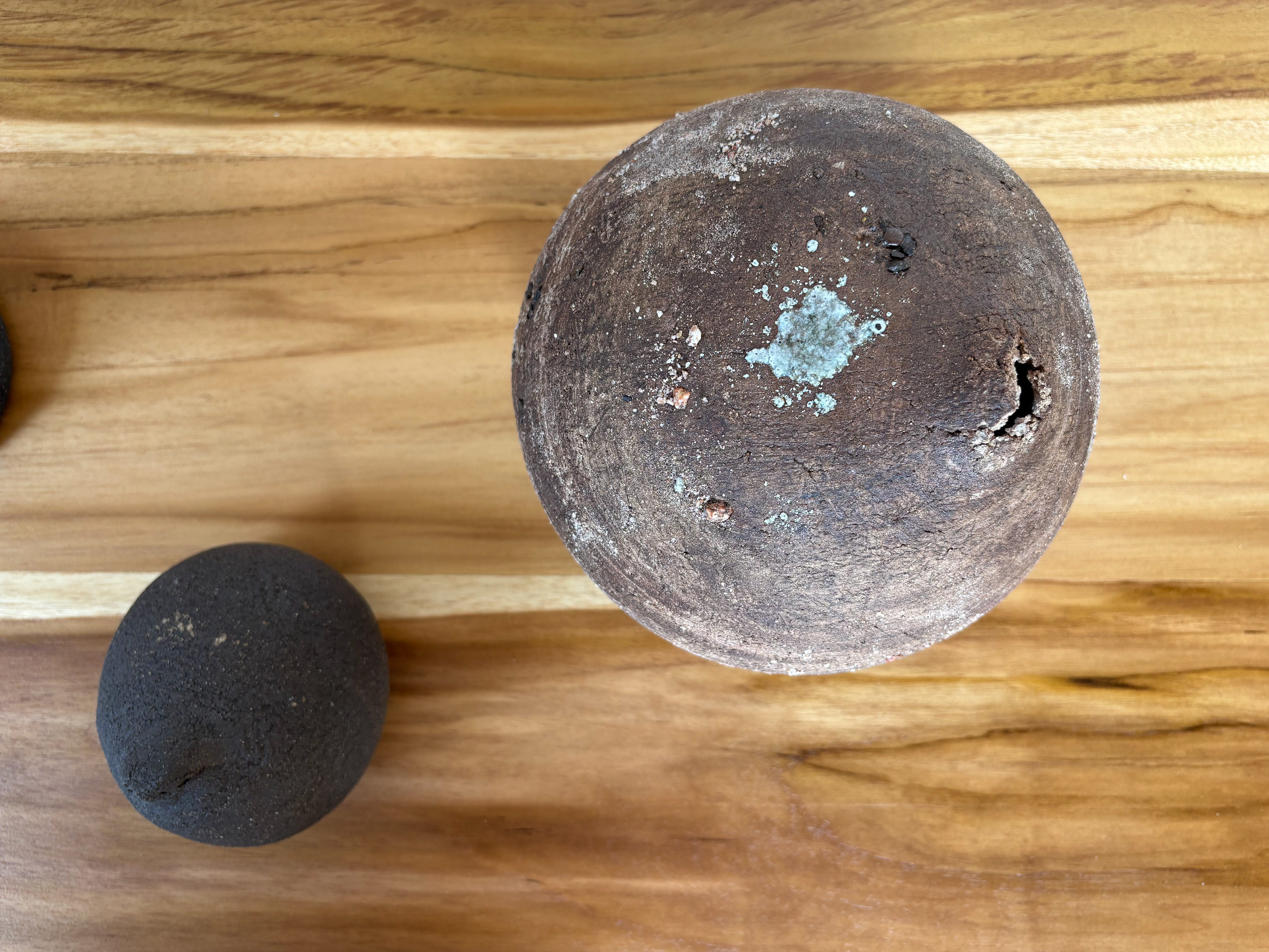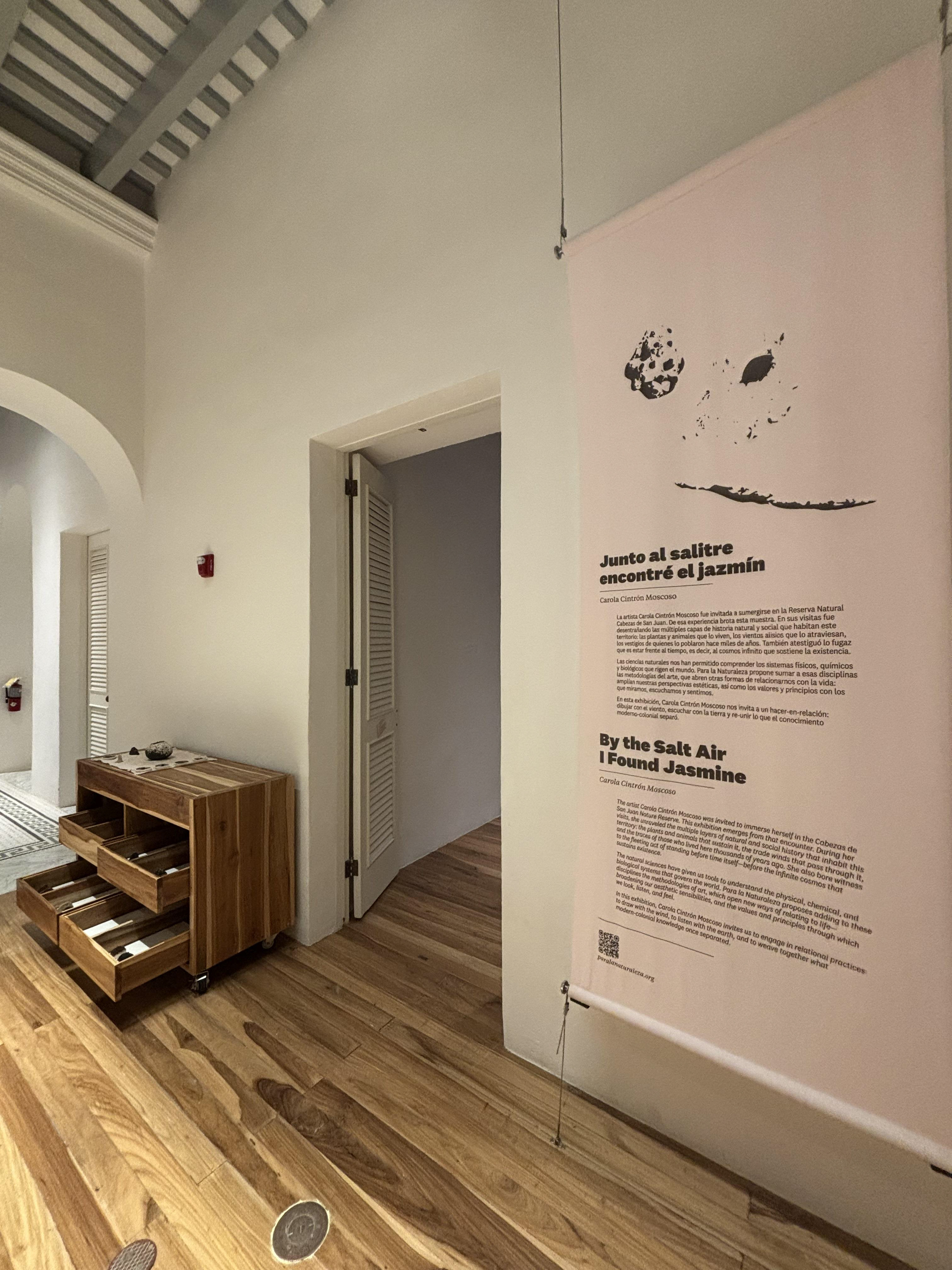 The series of objects, mostly ceramic, function as instruments; they don't exist to be seen merely, but to be activated and invite us to a sensory experience. They are meant to be struck, or to be moved like the ebb and flow of the wind, to be held carefully in the hands and brought close to our ears as when we hold a seashell: in these ceramics vibrate the murmur of the sea and the sediments of time, now offered to you as a gift. The objects were molded using various soils from this archipelago (some from the Fajardo region itself) and together offer a sampler of the soils that nourish and sustain life." (Mauricio Marcin, Curator)